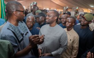 Après le chef de l’Etat, son Premier Ministre, Monsieur Ousmane SONKO est passé au stand de l’Agence Sénégalaise de la Couverture Sanitaire Universelle (SEN-CSU) à la Foire Internationale de l’Agriculture et des ressources animales (FIARA) où il a été accueilli par le Directeur général, Dr El Hadji Séga GUÈYE. Ce dernier lui a fait le point sur les réformes du programme de CSU en cours de mise en œuvre et lui a remis, pour l’occasion, une carte d’assuré symbolique, confectionnée sur place.